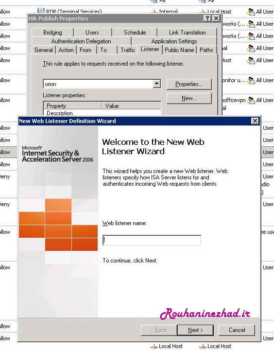نکته:یکی از ویژگی های جذاب و قابلیت قدرتمند محیط ISA این است که میتوان برای Publish شدن بازه زمانی انتخاب کرد تادسترسی به دوربین ها را در روز های خاص و ساعات خاص ، ایجاد کنیم. و این برنامه زمانی بصورت خودکار توسط ISA Server اعمال میشود :