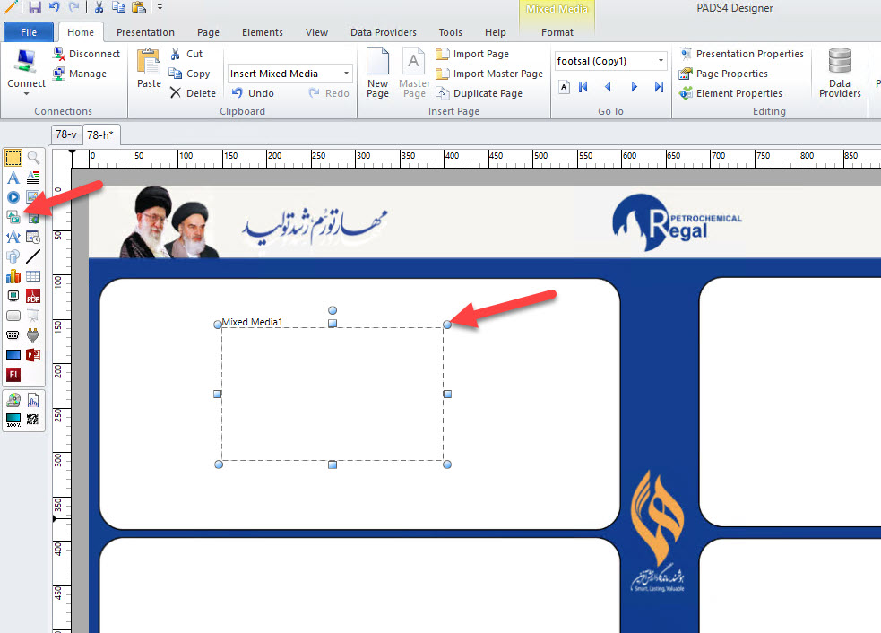 5- حال در محیط طراحی pads4 Designer یک کامپوننت نوع Mixed media درج میکنیم: