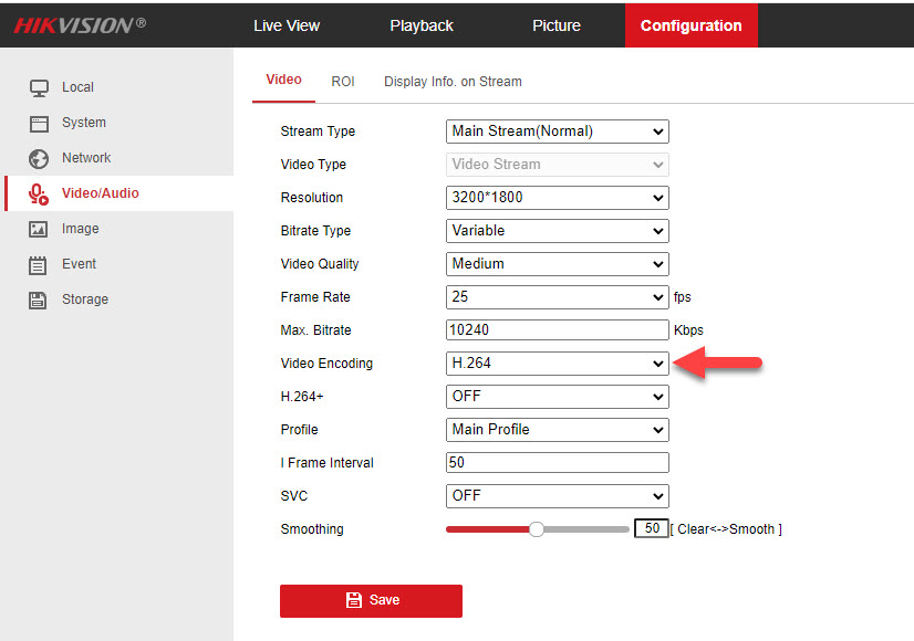 نکته3: می بایست تصویر دوربین روی Encoding نوع H.264 باشد: