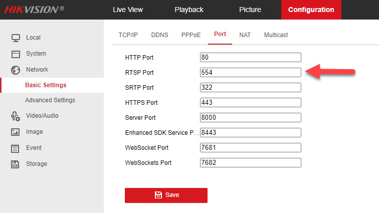 پورت پروتکل RTSP بصورت دیفالت روی 554 ست شده است.