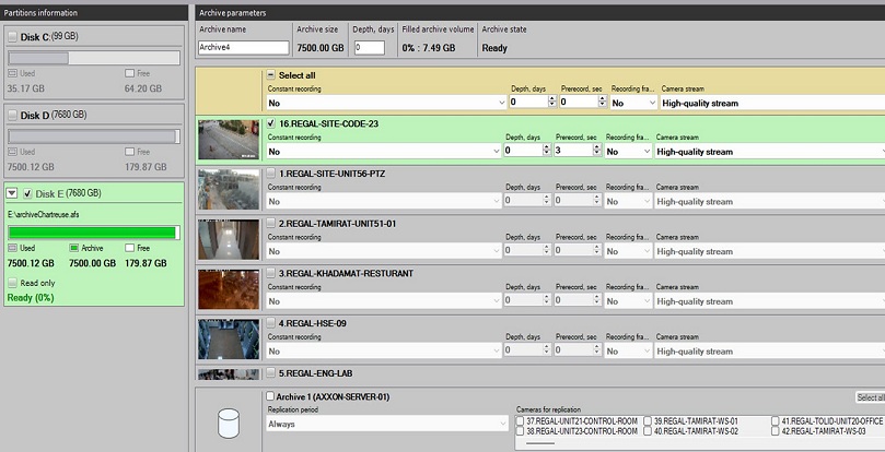 در محیط کانفیگ ذخیره سازی تصاویر دوربین های اکسون ، به سادگی امکان انتخاب فضای آرشیو ثانویه جهت Replication آرشیو ها وجود دارد. این امکان در نرم افزار مایلستون نسخ قدیم و همچنین برای تجهیزات سخت افزاری ، بصورت استاندارد و با کارایی لازم وجود نداشت.