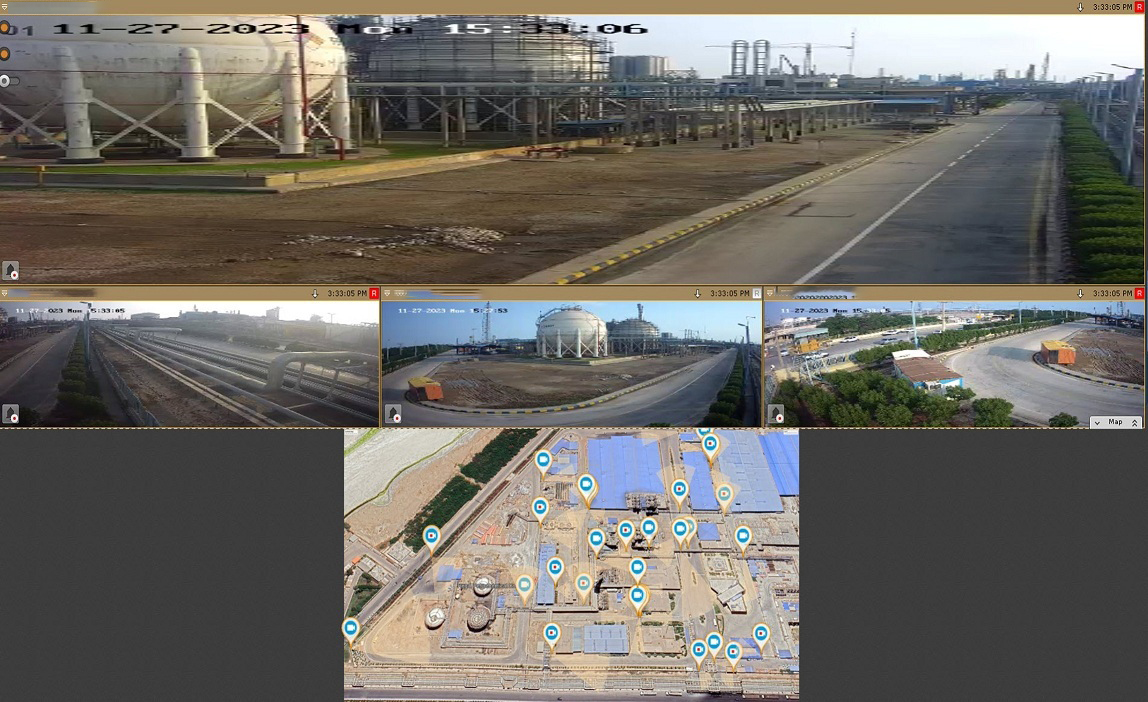 یکی از امکانات بسیار مفید نرم افزار اکسون ، قابلیت MAP می باشد.نقشه Satellite سایت به نرم افزار داده شد و کلیه دوربین ها با امکان طراحی دقیق زاویه دید ، روی نقشه ترسیم گردید.بدون نیاز به حفظ بودن شماره یونیت های سایت توسط اپراتور ، با کلیک روی ناحیه دید دوربین ، دوربین آن منطقه نمایش می باید: